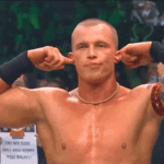 He goes on his knees and flexes his body more and kissing each bicep before he gets off his knees and walks straight to the ring and steps through the ropes as he lets Ginny in the ring and kisses his body biceps each time and showing off his six pack and everything about his body, taking his body extremely seriously, saying he's the sexiest thing to come out of professional wrestling before he lets Ginny out of the ring and he waits for the next opponent to come out.